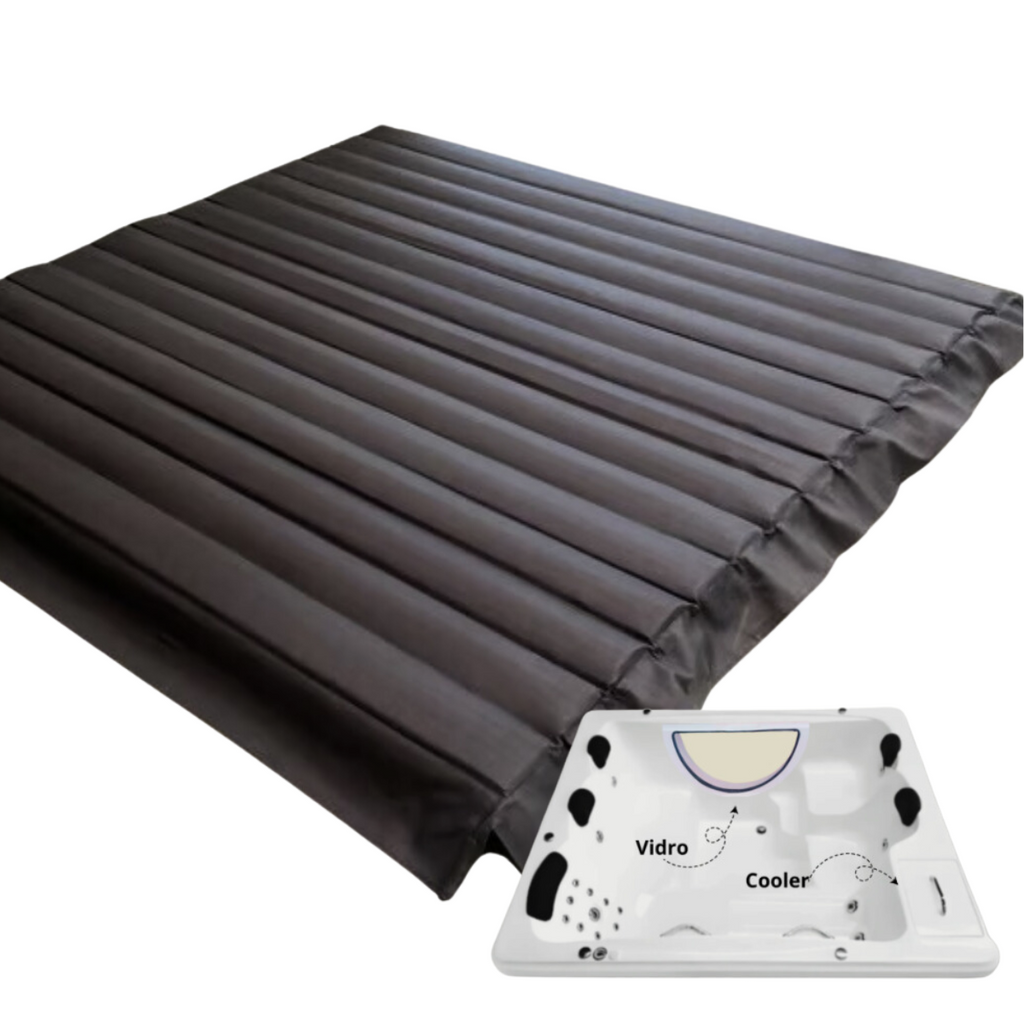 A Capa Térmica Enrolável, foi desenvolvida com o objetivo de proteger a spa/banheira/ofurô de intempéries e manter a temperatura da água aquecida por mais tempo, auxiliando na conservação, manutenção e limpeza de uma forma muito mais prática.